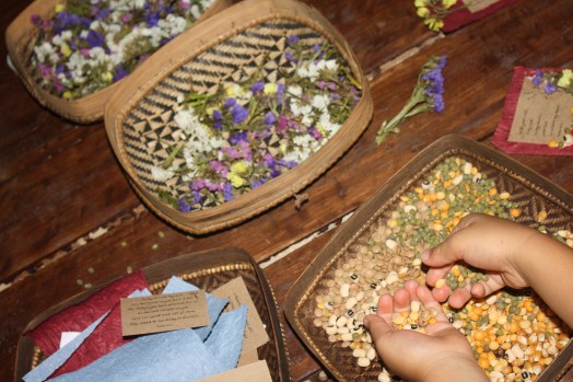 In this weekly celebration, the children have been busy doing as well. The first week, they made paper lanterns which they used the very same day, at dusk, to light their way towards a little hut we set up for an Advent story. Then they walked a beautiful spiral in the woods. The second week they made gift cards out of materials from the plant kingdom. The children are also preparing.