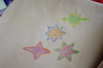 I used to put their presents under the tree also on the 24th, but this year, they’re already there. No names, though. I coded them. Tee hee. Stars for one boy, balls for the other. They’re still guessing.